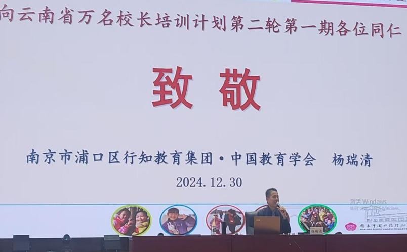12月30日下午,云南省“万名校长培训计划”第一期“名家讲座”第七讲开讲。南京行知教育集团校长杨瑞清作了题为《走在行知路上 培育时代新人》的专题讲座。讲座由本期学员昭阳区第二中学李琼老师主持。