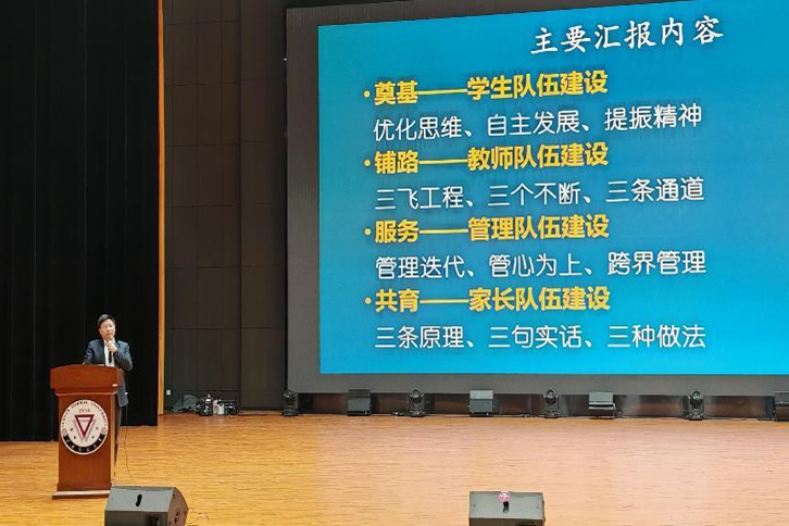 讲座伊始,汪宁围绕《校长专业标准》展开解读,梳理了“以德为先、育人为本、引领发展、能力为重、终身学习”五大理念,明确校长作为学校发展“领航者”的核心职责——既要科学规划学校发展方向、深度领导课程教学改革,更要全力引领教师专业成长、精细优化内部管理机制、主动调适外部育人环境,为校长们清晰勾勒出专业履职的“行动蓝图”。随后,汪宁以“奠基、铺路、服务、共育”四个关键词,阐述了具体实践路径,为参训学员长破解学校发展难题、提升办学质量提供了可借鉴、可落地的实践策略。