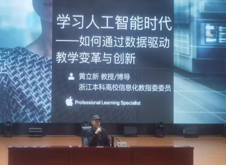 讲座中,黄立新教授分析了人工智能技术国内外发展趋势,重点介绍了DeepSeek等国产大模型的发展历程、面临挑战与前景,阐释了我国人工智能技术成果的重要意义。他还现场演示了DeepSeek、即梦、tripo等工具的融合应用,呈现从文本生成图片、再到转化为3D模型的智能处理过程。黄立新强调,人工智能正深刻改变工作生活与思维方式,教育工作者要以数据驱动教学变革创新:以AI为基前置教师工作,以AI为伴实时响应号召,以AI为翼突破认知边界,以AI为眸洞察学习数据,以AI为钥解锁教学新模式。